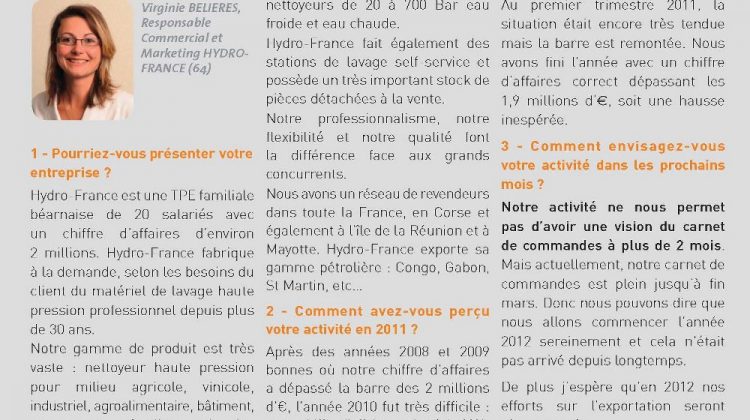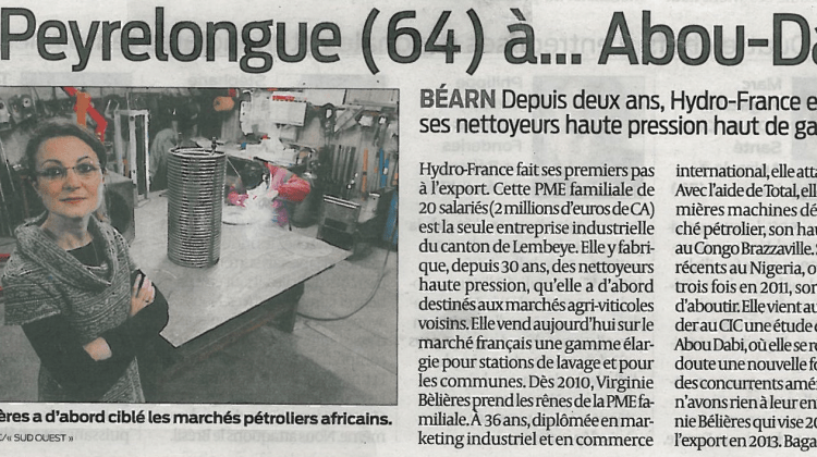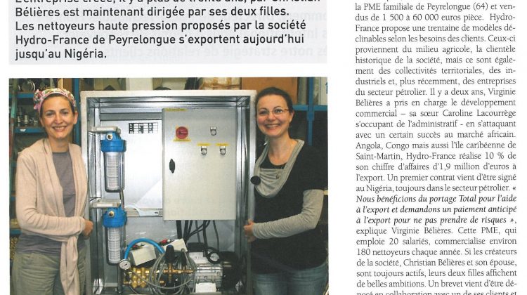 L’entreprise créée, il y a plus de trente ans, par Christian Bélières est maintenant dirigée par ses deux filles. Les nettoyeurs haute pression proposés par la société Hydra-France de Peyrelongue s’exportent aujourd’hui jusqu’au Nigéria. « Fiables et robustes », assure Virginie